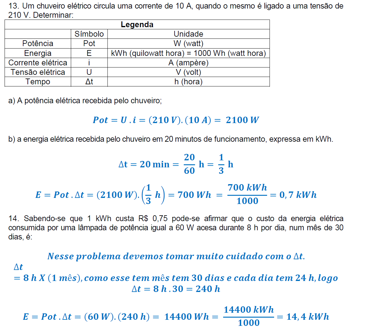 15. Como podemos calcular a potência dissipada em um resistor? E a energia elétrica consumida, num certo intervalo de tempo?